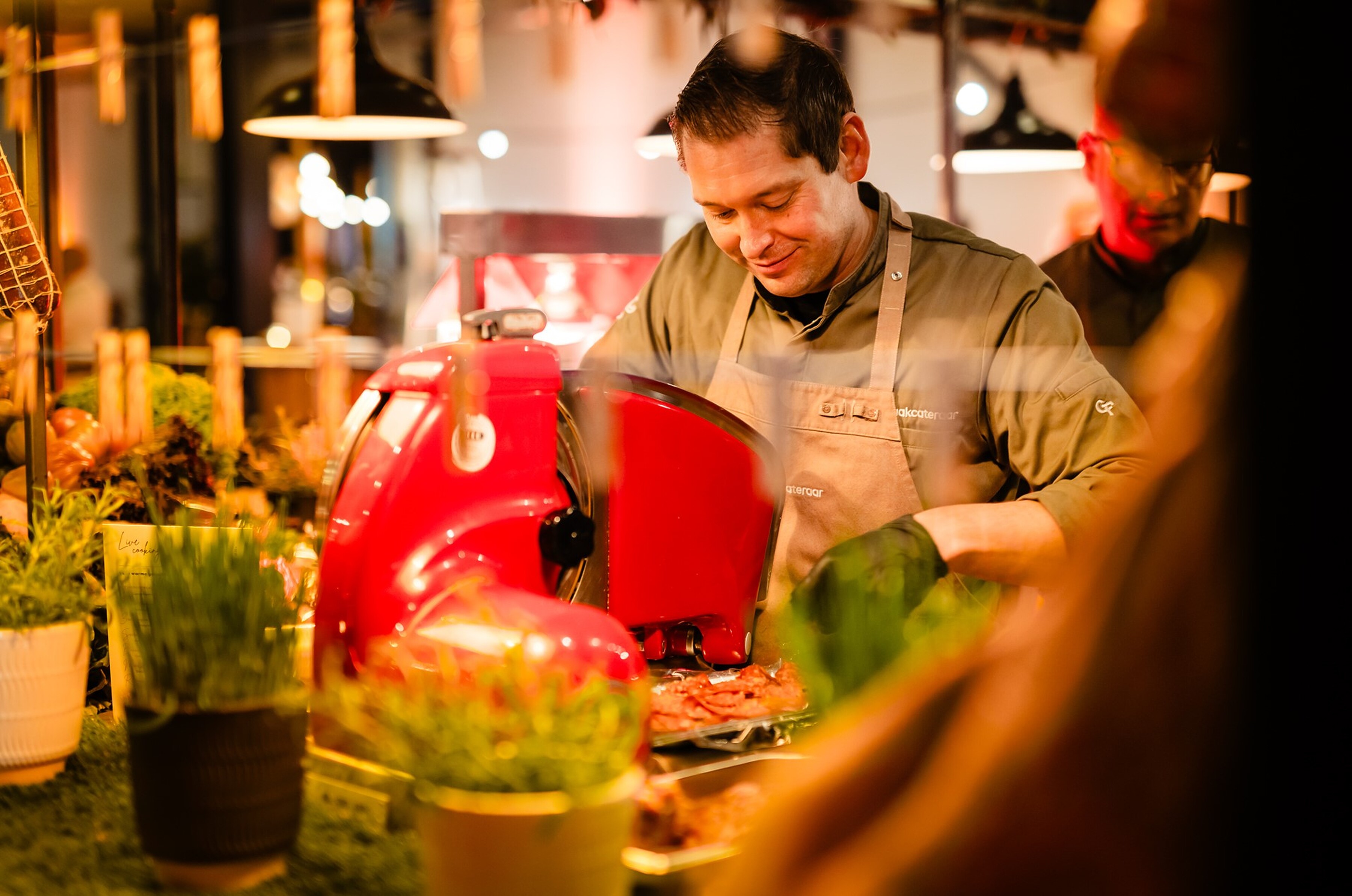 Wat Smaakcateraar onderscheidt, is de unieke combinatie van creativiteit, flexibiliteit en fullservice. Geen standaardoplossingen, maar maatwerkconcepten die naadloos aansluiten bij de identiteit van jouw organisatie én het moment. “Wij creëren beleving,” benadrukt Roy. “Denk aan een winterse foodmarket op locatie, een sfeervol aangeklede loods met live cooking, een glühweinbar en livemuziek, of een high-end sit-down dinner op kantoor – compleet met bediening, tafelaankleding en entertainment.” Het team van Smaakcateraar denkt mee over elk detail: van menukeuzes en styling tot techniek, logistiek, entertainment en zelfs de locatie. Zo toveren ze externe locaties, bedrijfspanden of tenten om tot unieke eventlocaties, perfect passend bij jouw wensen.