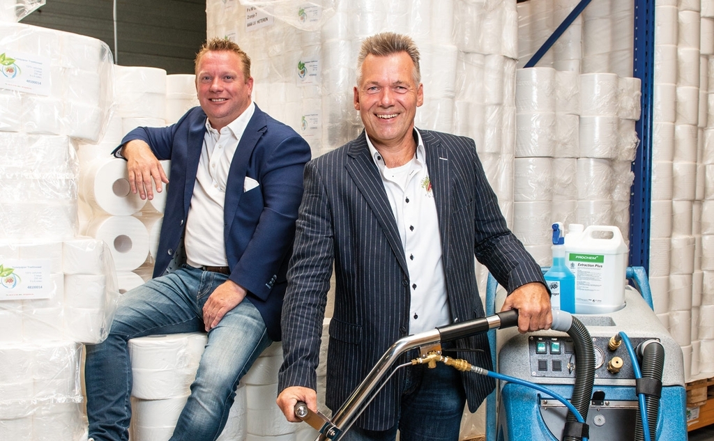 Edwin: “Onze groothandel heeft alles op het gebied van schoonmaak. Van wc-rol tot glasbewassingsmaterialen. Van afvalzak tot schrobmachine. We kopen zoveel mogelijk dichtbij huis en bij de bron in. Onze reinigingslijn is uitgebreid en gevarieerd. Ook afnemers kunnen onder private label producten uitbrengen. Voor schoonmaak- en bijvoorbeeld horecabedrijven is dat interessant in het licht van branding. We hebben een eigen storingsdienst. Als een doseerunit van een vaatwasser bijvoorbeeld niet werkt, dan loopt de klant vast. We lossen zaken dus snel op. Onze serviceniveau ligt hoog. We zijn 24 uur per dag bereikbaar.”
