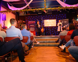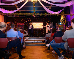 De avond werd geopend door gasthouders Taike Rouwmaat en Renée Meurs, die de aanwezigen een warm welkom heetten. Zij vertelden enthousiast over de veelzijdige mogelijkheden die Venue13 biedt voor zakelijke evenementen. Een mooie nieuwe toevoeging is het terrein achter de locatie, waarmee nu ook grotere buitenevenementen in de tuin kunnen worden georganiseerd.