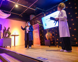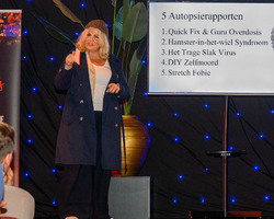 Vervolgens namen Muriël en Kimberley Versluis van de Game Changer Academie het podium over met hun pakkende sessie CSI Business Editie. Tijdens deze interactieve presentatie werden de bezoekers meegenomen in vijf ‘businessmoorden’, herkenbare situaties waarin ondernemers zichzelf onbewust dwarsbomen. De presentatie zorgde voor veel herkenning én nieuwe inzichten. Wie nieuwsgierig is naar zijn of haar eigen “autopsierapport”, kan dit gratis inzien via: https://gamechangeracademy.nl/business-edition-rapport/ .
